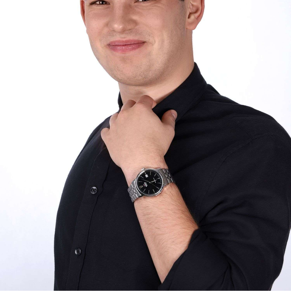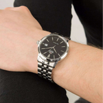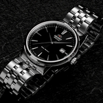 This is Orient contemporary mechanical watch with date. New Powered by an in-house manufactured automatic Calibre F6722, this new timepiece expertly balances a precision mechanical movement with modern design and colour combinations. An attractive see-through case back enhances the refined aesthetic design. This timepiece supports water resistance of 50 meters.