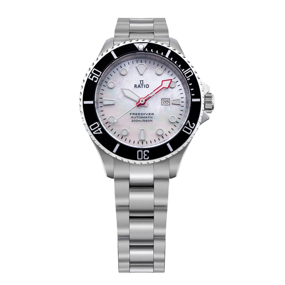 Smaller fit but mightier performance, the RTFL841’s 35mm mother-of-pearl dial shines in a 316L stainless steel case made for bold women divers. With a unidirectional bezel and sapphire crystal, it’s elegant and resilient—crafted to fit your marine adventures perfectly.