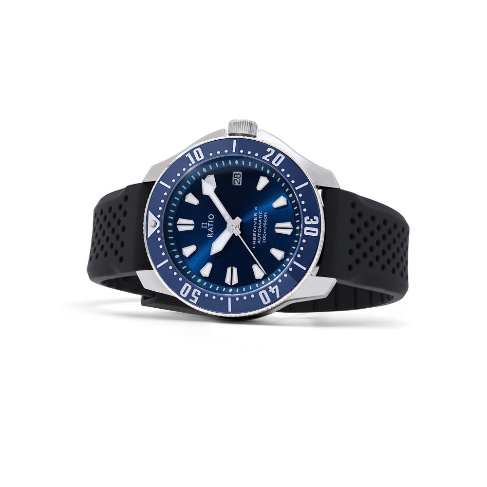 The Ratio Freediver X is not just a watch but a symbol of the uncharted depths that lie beneath the surface. The X symbolizes anonymity, the embodiment of the spirit of freedom regardless of your identity and the boundless possibilities that come with exploring the unknown. Crafted to withstand the rigors of any underwater adventure, this iconic timepiece is designed in Italy and powered by a state-of-the-art automatic movement.