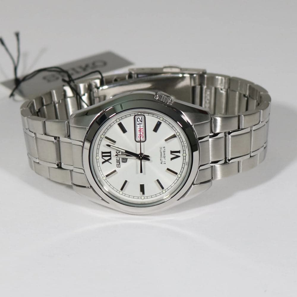 Seiko 5 White Dial Silver Stainless Steel Strap Men Watch SNKL51K1P