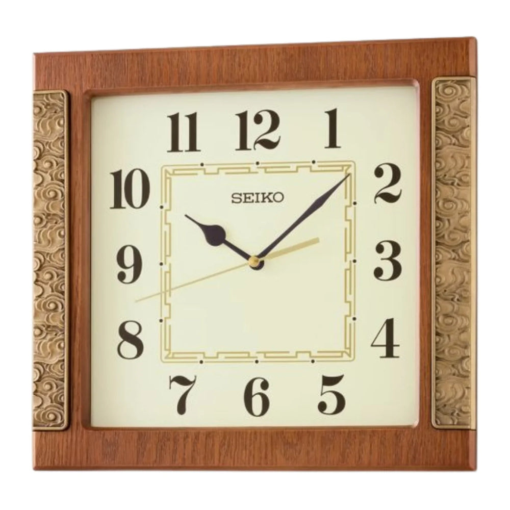 Seiko Clock Brown Case Square Wall Clock QXA842B
