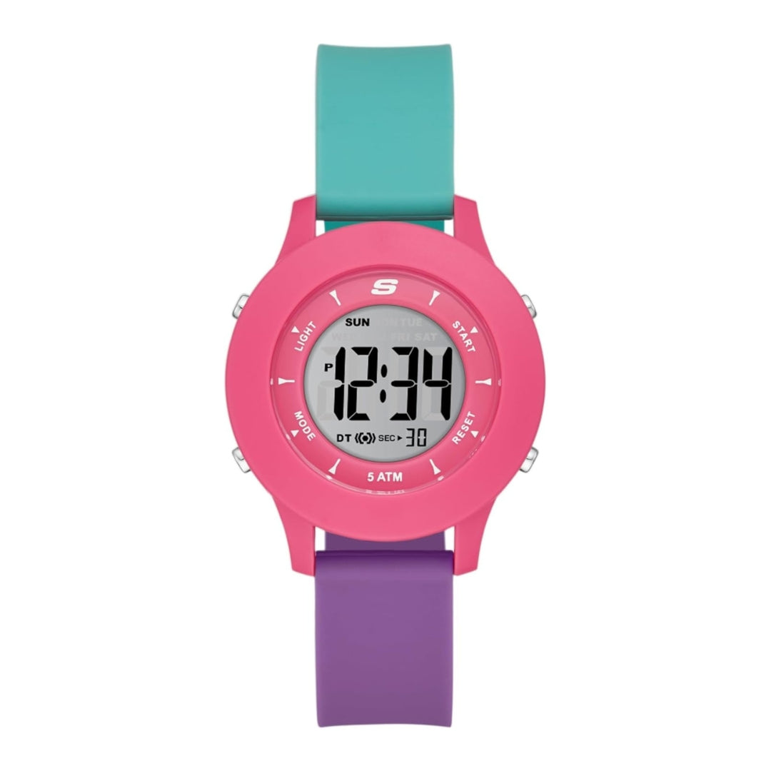 A stylish and functional digital timepiece, the Skechers Rosencrans watch features a round polycarbonate case, a vibrant multicolor dial, and a soft silicone strap for all-day comfort. Designed for everyday wear, it offers a lightweight feel with water resistance up to 50 meters.