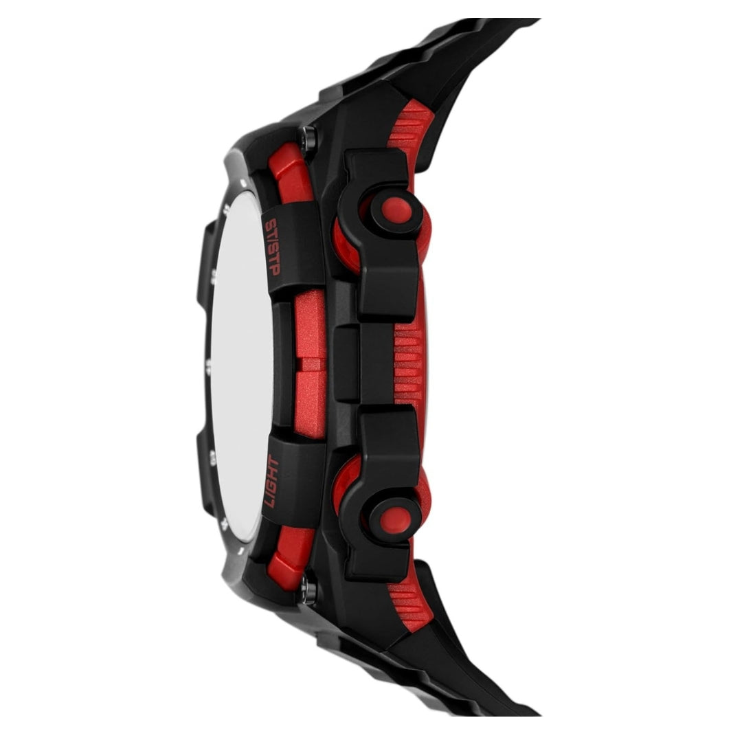 The Skechers Sturgess Digital Red Case Dial Black Watch (SR1170) combines a bold red case with a sleek black dial and strap, making it a standout timepiece for those who love sporty, stylish accessories. With a 49mm polycarbonate case and 15mm thickness, it offers a durable yet lightweight design. The digital display ensures easy readability, and its 100-meter water resistance makes it suitable for swimming and everyday activities. The polyurethane band provides a comfortable fit, while the tang buckle closure keeps it secure.