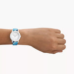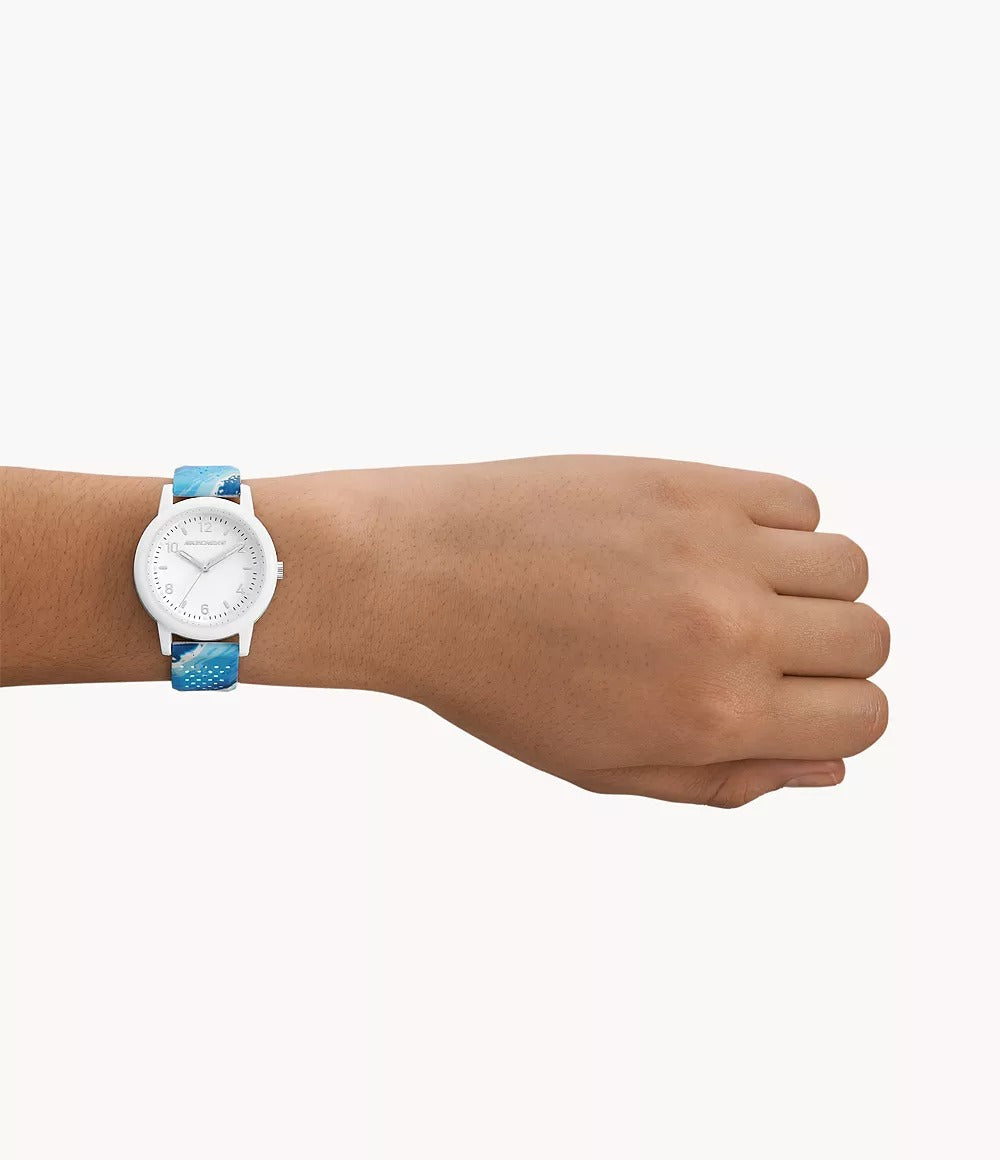 The Skechers Toluca Aqua Print Blue & White Watch (SR6274) is a stylish and vibrant timepiece that adds a refreshing touch to any outfit. Featuring a white polycarbonate case with silver-tone accents and a soft silicone strap with shades of blue print, this watch offers a playful yet elegant design. With 3 ATM water resistance, it is perfect for everyday wear.