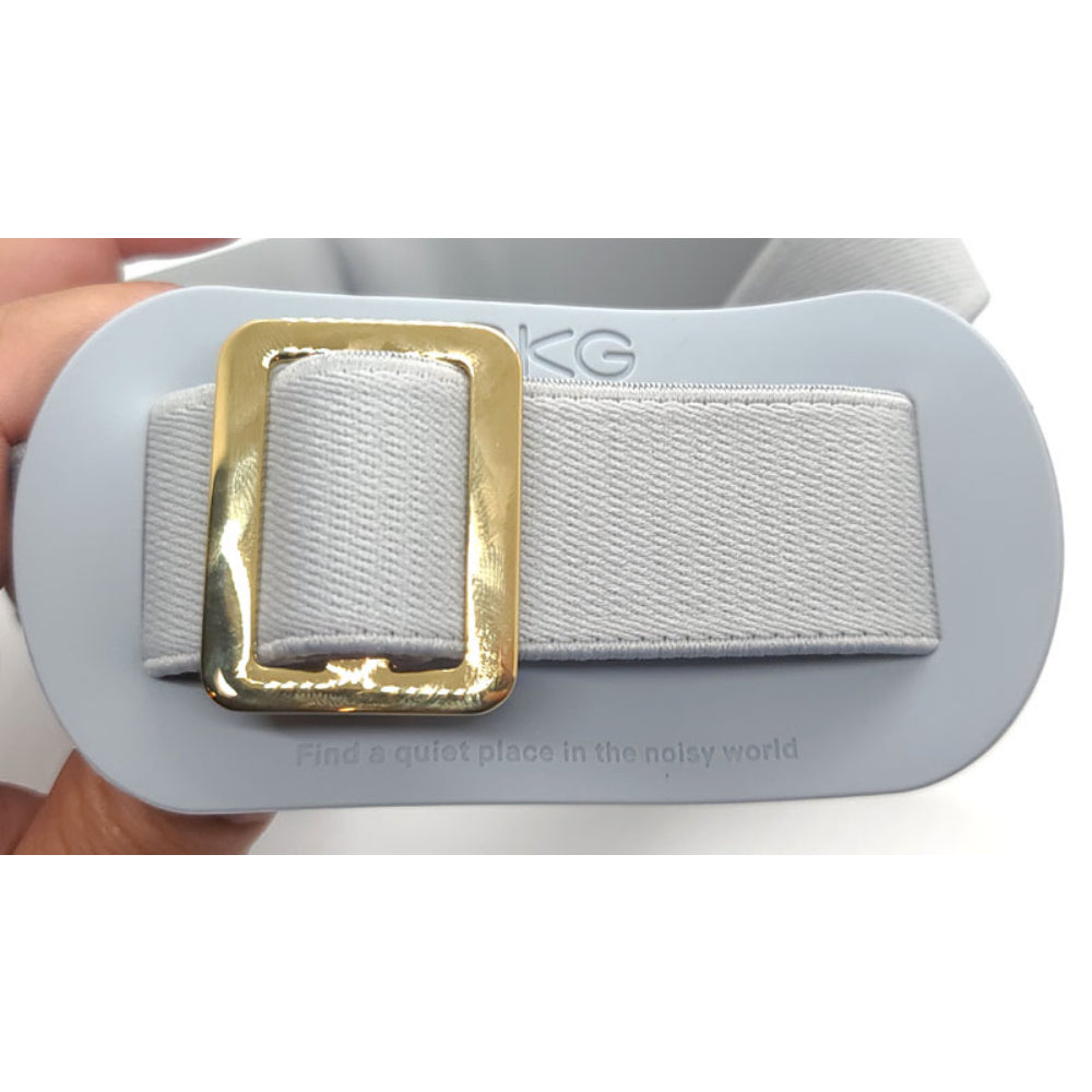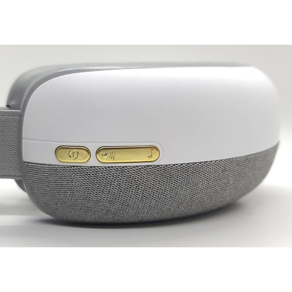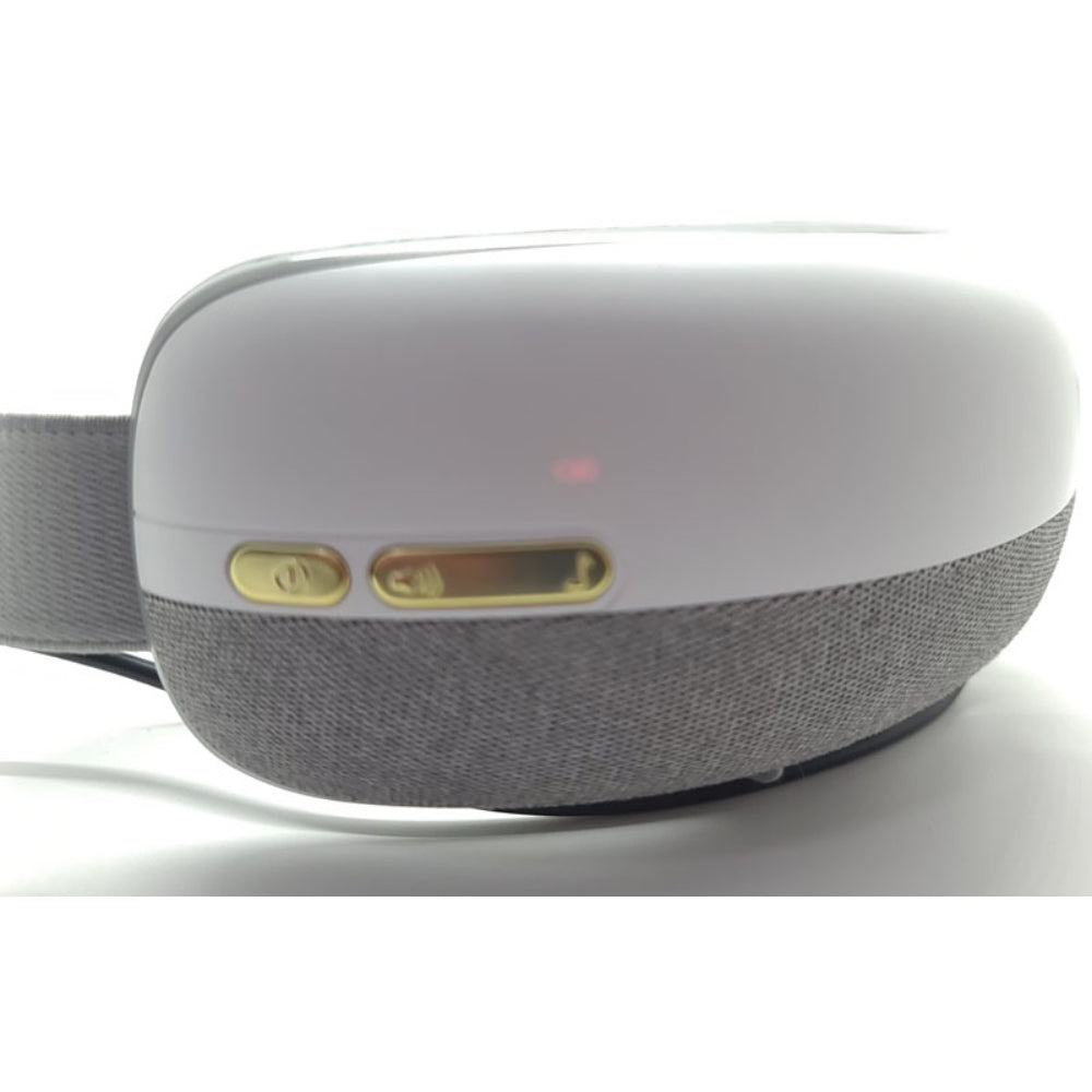 The eye massager’s adjustable headband features a gold-tone buckle used to adjust the length for a snug, but not tight fit.