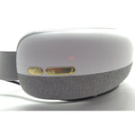 The massager is a large goggle-like device, except you can’t see when you’re wearing it. A power indicator light is front and center in the hinged design. You can see it folded in the What’s in the box section above.