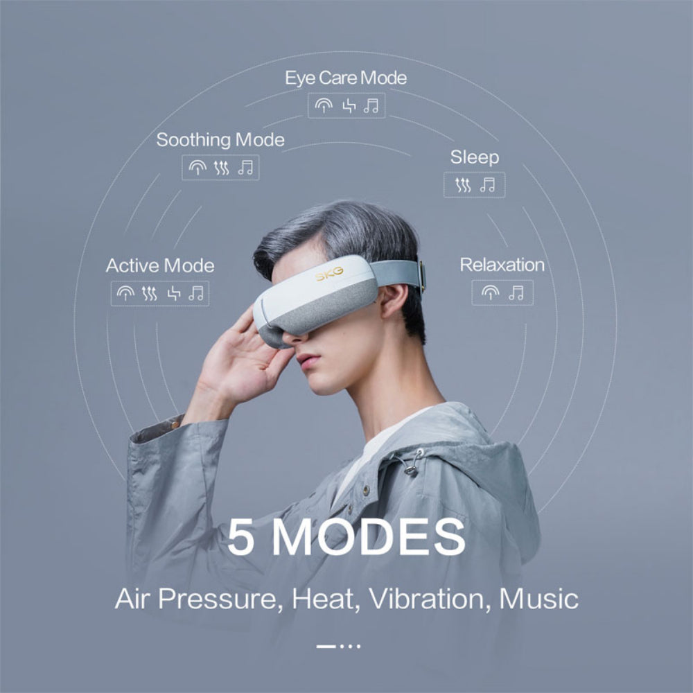 The SKG E3 eye massager can provide five modes of massage, sound, and heat treatment around your eyes and temples.