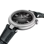 The Tissot Desir is a perfect blend of timeless elegance and modern craftsmanship. Featuring a graded silver-black dial with Roman numerals, this slim and lightweight timepiece offers sophistication with everyday functionality. The domed scratch-resistant sapphire crystal enhances durability, while the black leather strap ensures a comfortable fit.