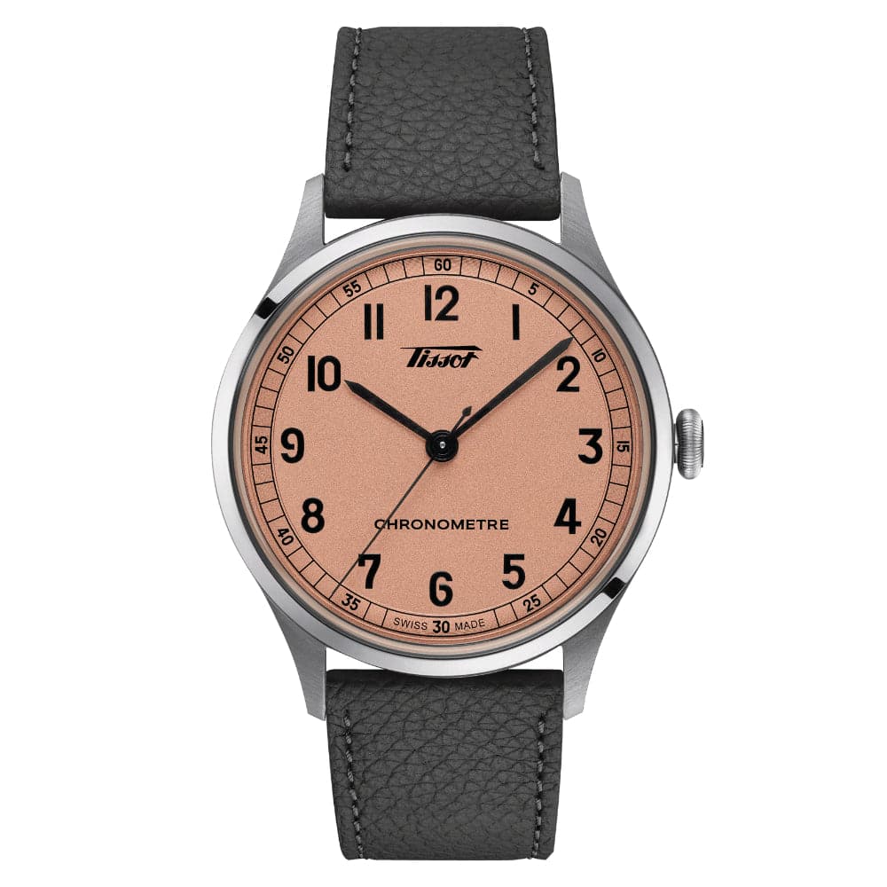 The Tissot Heritage 1938 pays tribute to Tissot's history. The 39 mm stainless steel case adds elegance and finesse. The vintage-inspired dial reinforces the watch's timeless aesthetic.