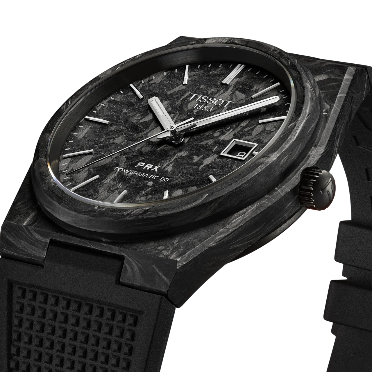 This extension of the PRX Powermatic 80 in 40mm features a forged carbon case. This innovative material makes each piece unique, in addition to providing lightweight durability. It Is designed for optimal performance in demanding conditions, empowering ambitious individuals to push their limits.