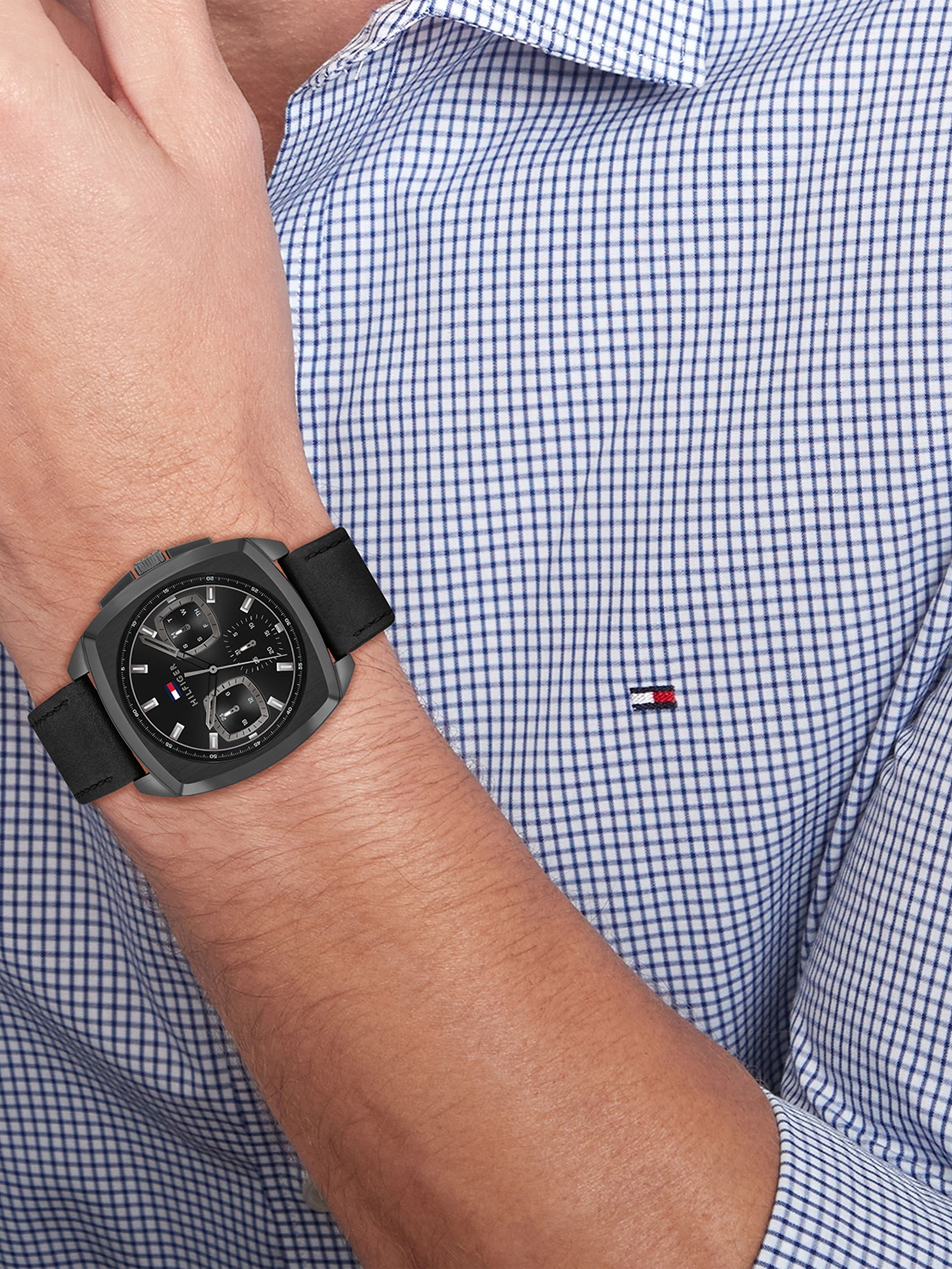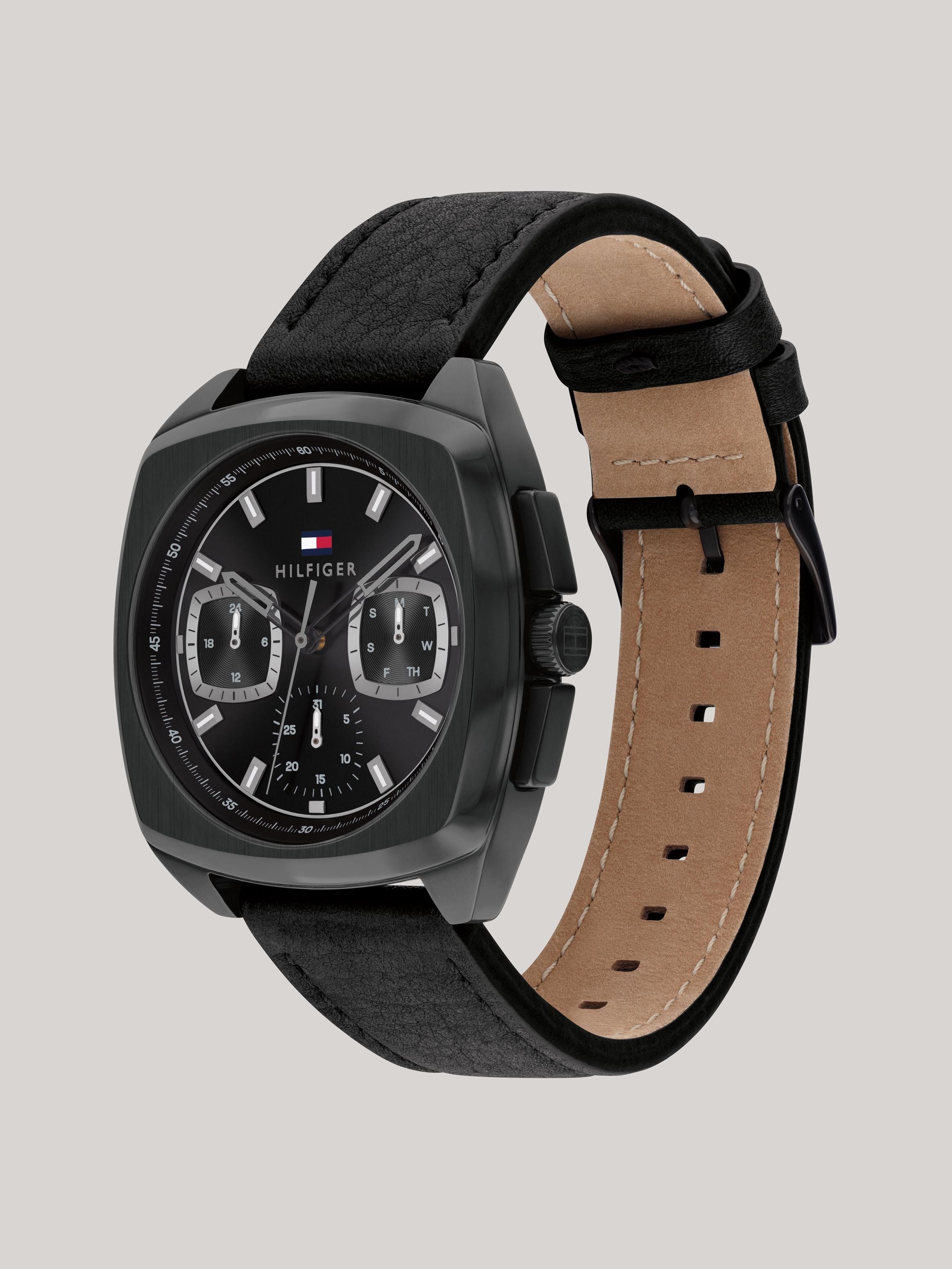 TOMMY HILFIGER APOLLO BLACK DIAL LEATHER STRAP WATCH 1710556