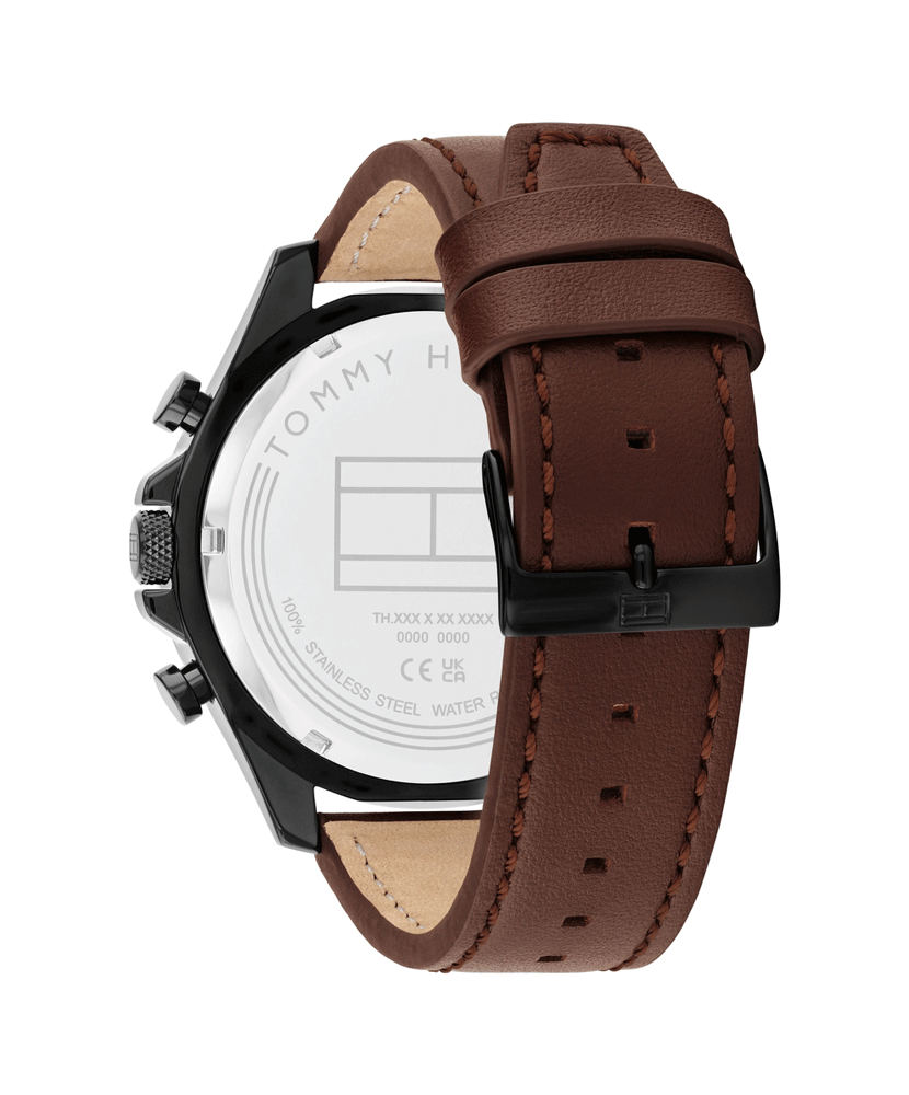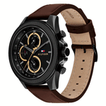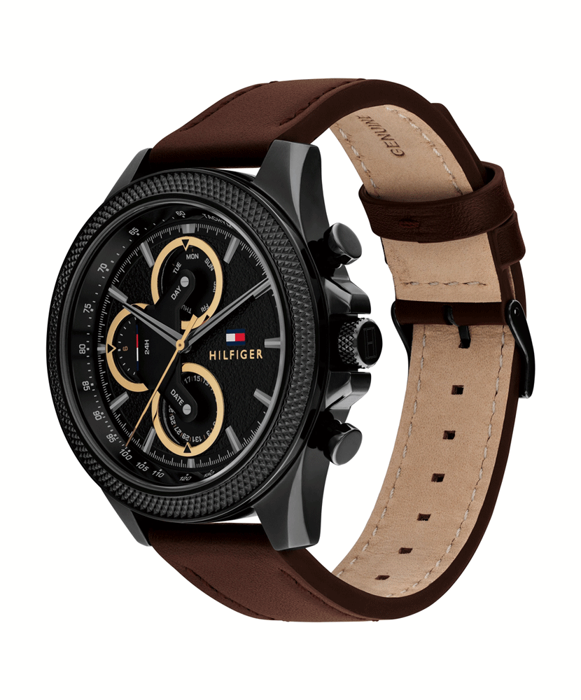 The Tommy Hilfiger Clark 1792164 is a sophisticated men's watch, combining a black dial with brown leather strap for a timeless and stylish look. Its sub-counter design adds to the versatility, making it ideal for both professional and casual settings. The 46mm stainless steel case in a black tone complements the understated elegance of the watch.