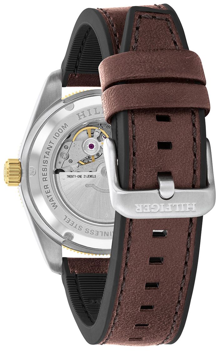 The Tommy Hilfiger TH85 Automatic 1792142 is a sophisticated men's wristwatch that blends timeless elegance with modern engineering. Powered by a 21-jewel automatic movement, this watch features an open back case, allowing a glimpse into its intricate mechanics.