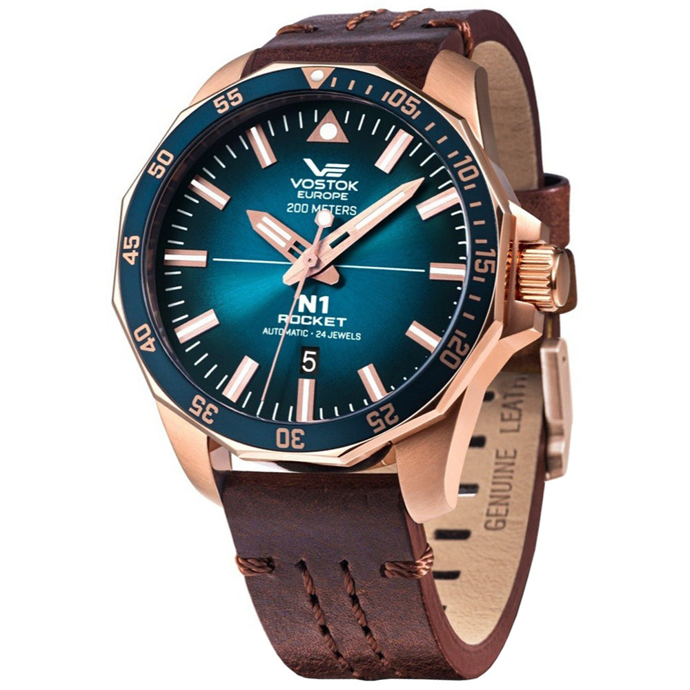 water resistance of this watch allows for swimming and diving. The case is a fashionable rose gold color. The Vostok Europe NH35A-225B616 looks more impressive and enhances its appearance. Simplicity and elegance also go hand in hand thanks to the use of a durable, solid steel case. The manufacturer significantly improved the water resistance of this model by securing it with a screw-down caseback. What may – but should not – go unnoticed is the screw-down crown. This further seals the case and makes the Vostok Europe NH35A-225B616 even more robust in everyday use. The bezel on the watch will help you count down the elapsed time. The measurement will be visible directly on the case