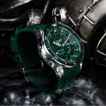 The Vostok Europe PX84-511A770S is a unique model that combines the features of mechanical and quartz watches . It also boasts sporty features and a tritium backlight, which is a favorite among tactical watches. The silver case houses a transparent green dial. The bezel surrounding the thick K1 crystal is also green. Inside, it's powered by a hybrid automatic movement made in Japan.