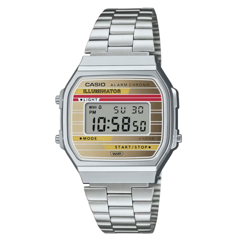 Casio General Digital Silver Stainless Steel Strap Unisex Watch A168WEHA-9ADF-P