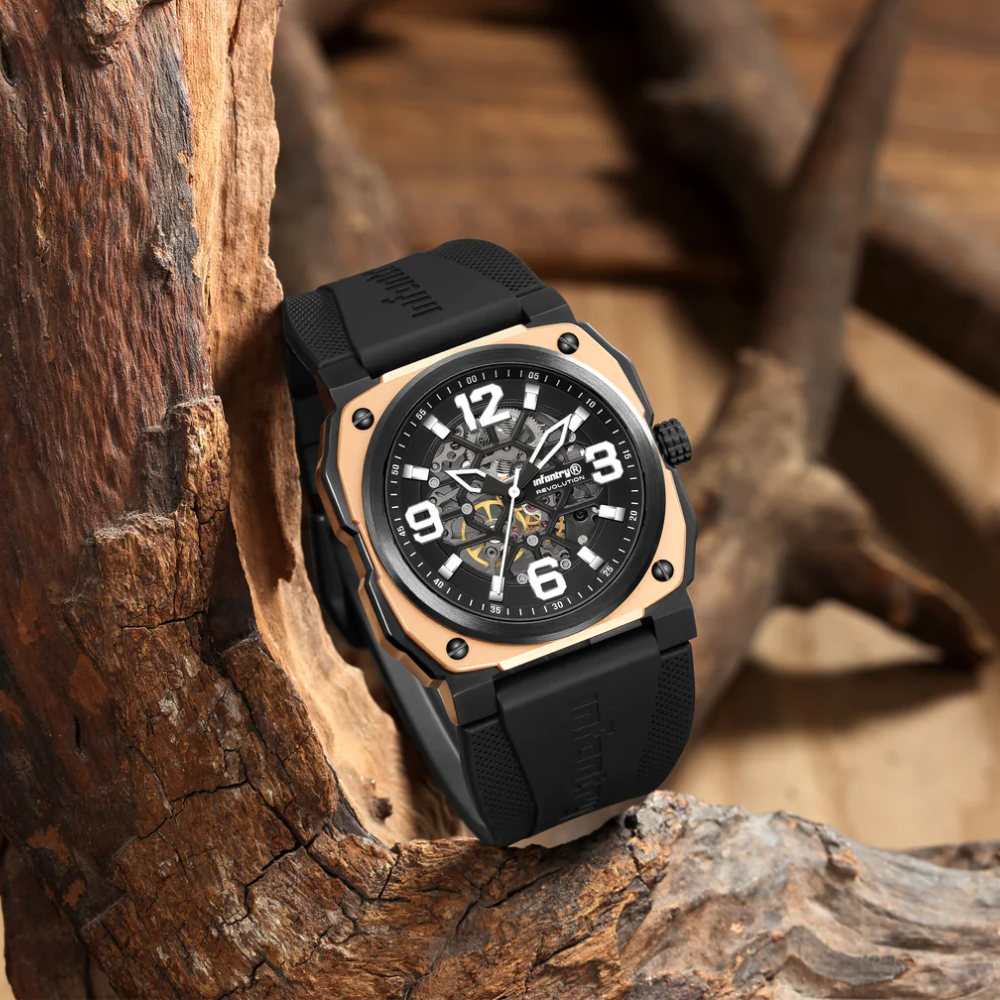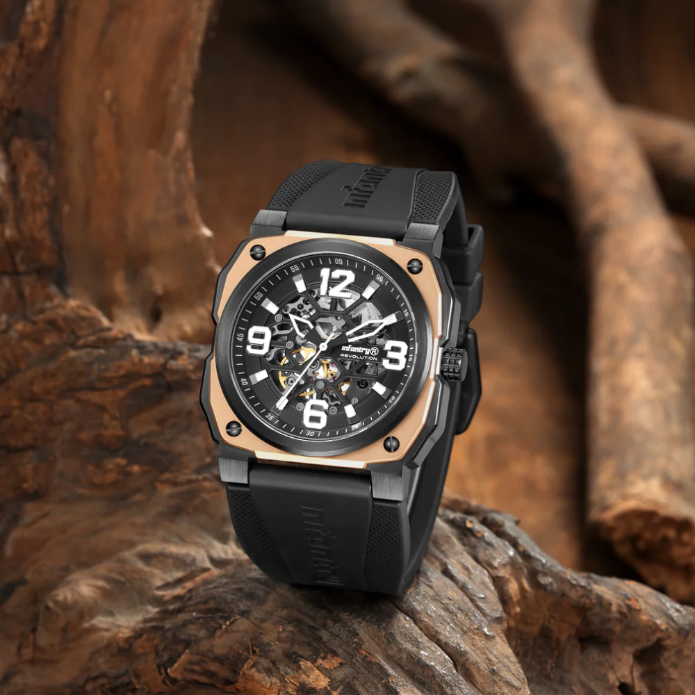 Infantry Revolution The Skeleton Black Silicone Strap Men Watch REVO-SKL-02-V2