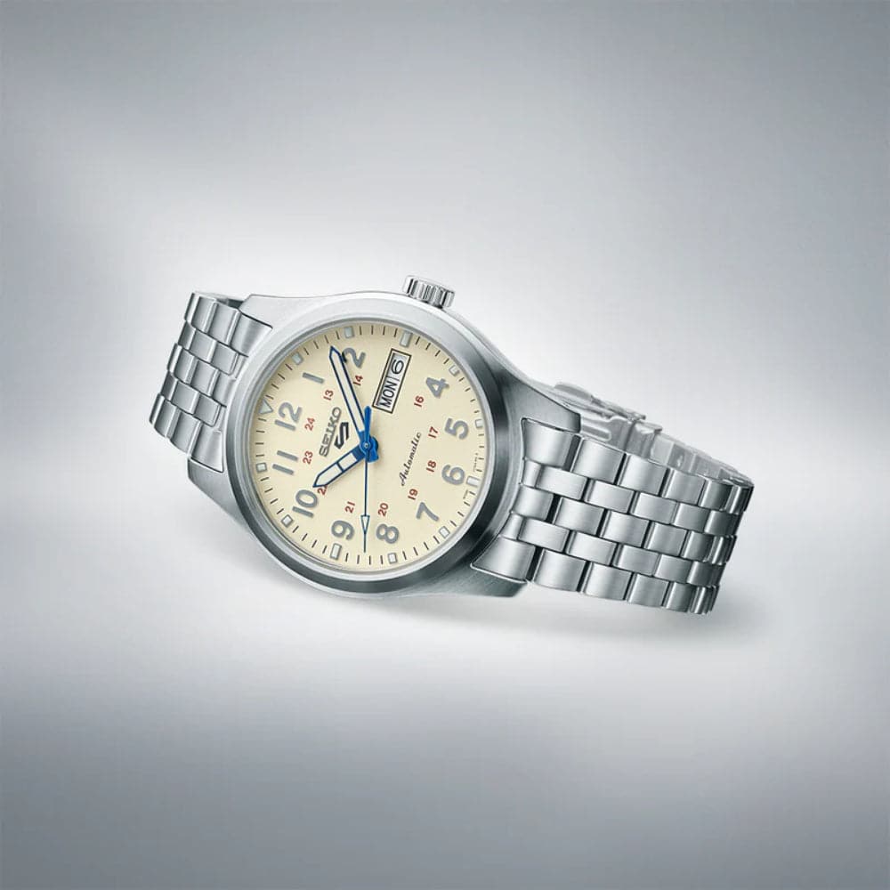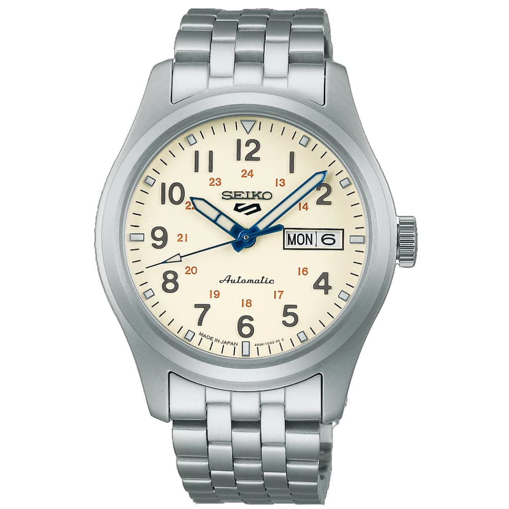 Seiko 5 Silver Stainless Steel & Brown Leather Strap Men Watch SRPK41K1P