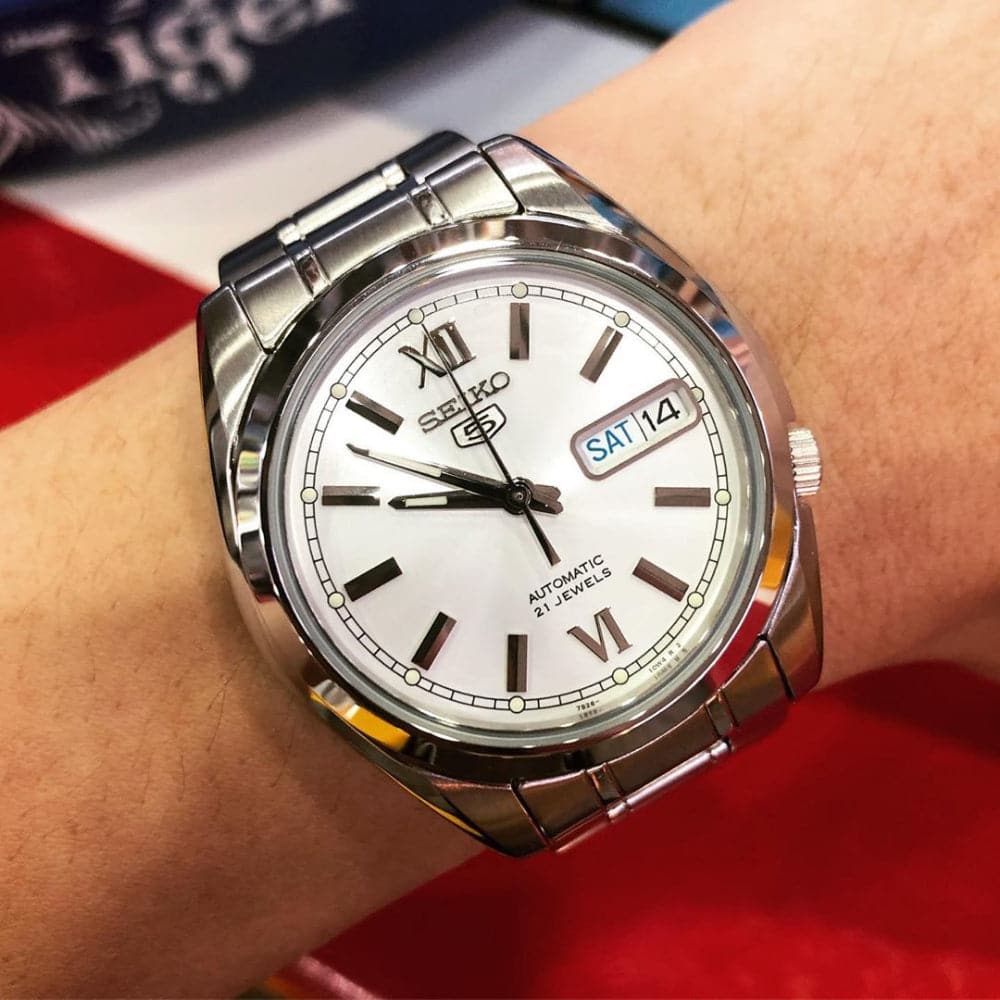 Seiko 5 White Dial Silver Stainless Steel Strap Men Watch SNKL51K1P