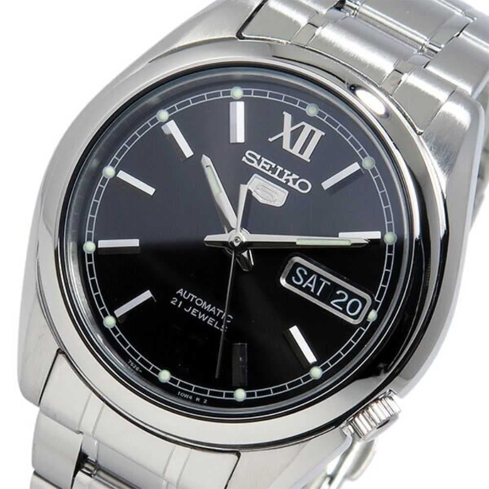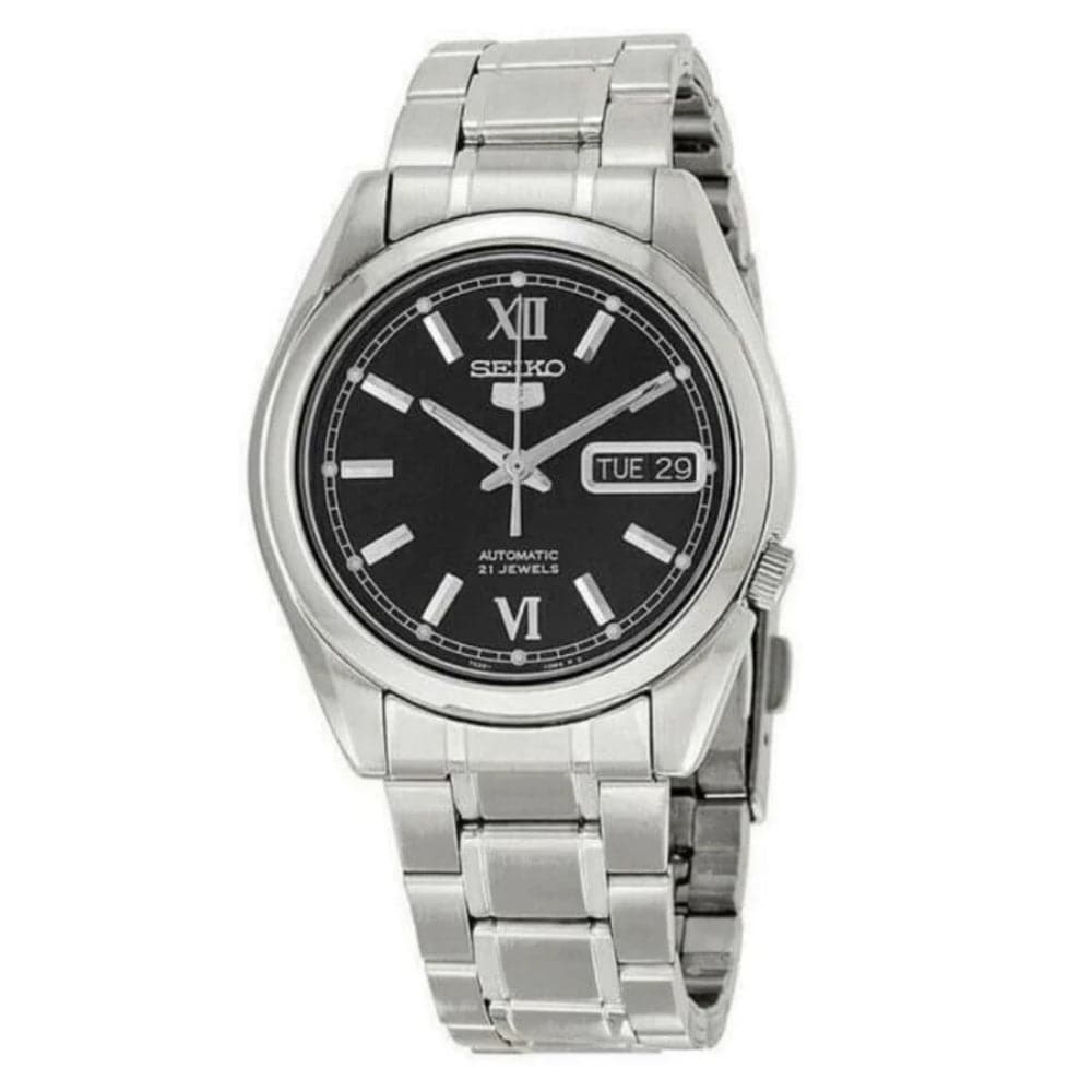 Seiko 5 Black Dial Silver Stainless Steel Strap Men Watch SNKL55K1P