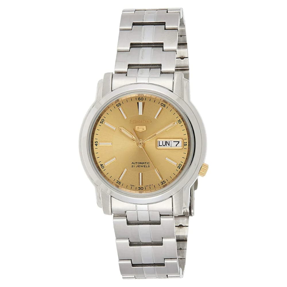 Seiko 5 Gold Dial Silver Stainless Steel Strap Men Watch SNKL81K1P