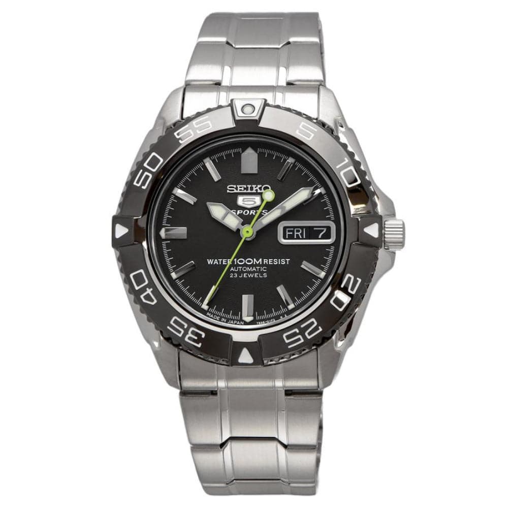 Seiko 5 Black Dial Silver Stainless Steel Strap Men Watch SNZB23J1P