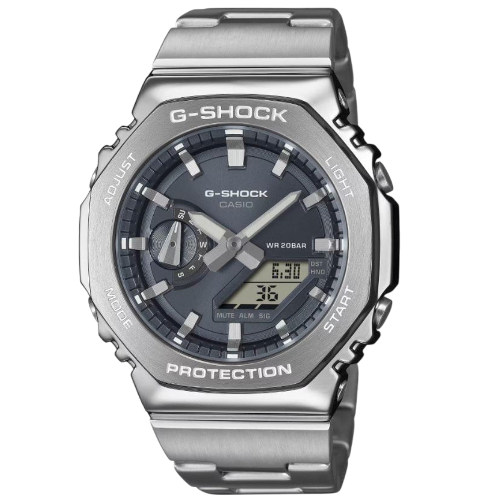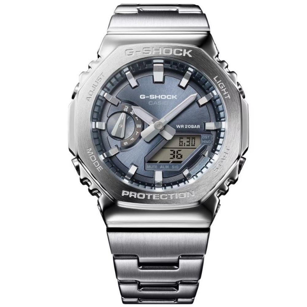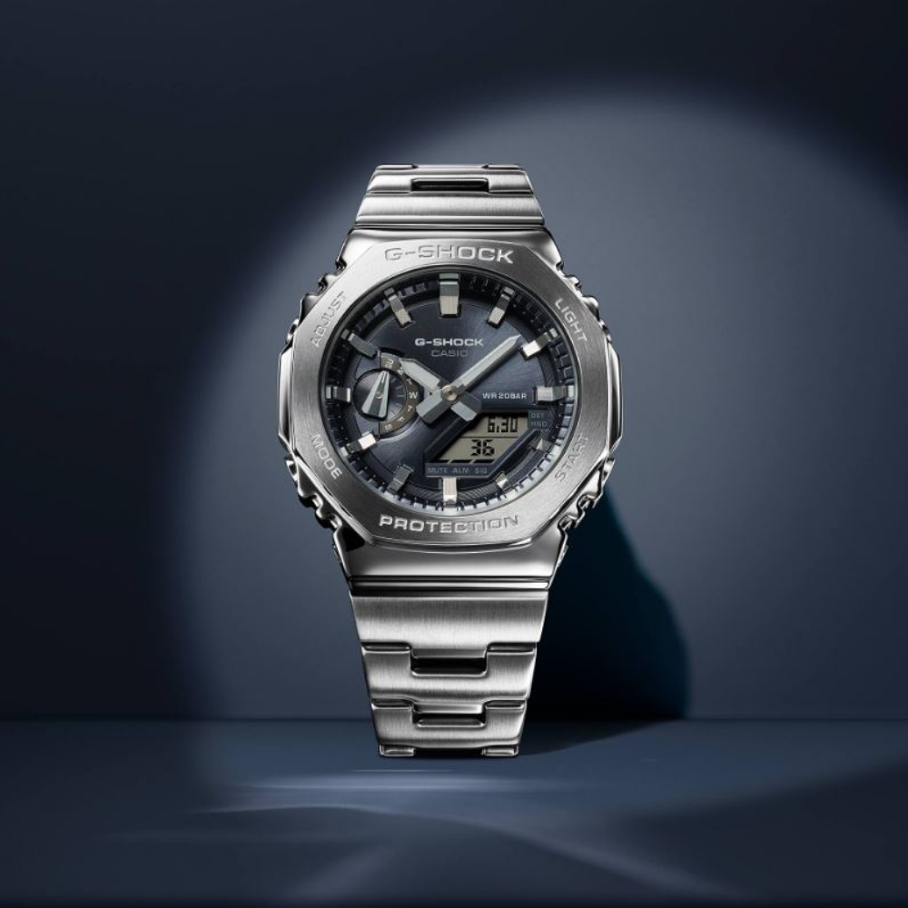 Check out the GM-2110D — the iconic analog-digital GA-2100, but with a stylish metal bezel and band update.
