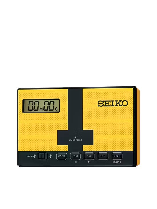 SEIKO CLOCK This versatile digital timer features a stopwatch function for precise time measurement and a countdown timer that can be set for up to 99 minutes and 50 seconds. Easily switch between time, stopwatch, and countdown timer modes using the touch sensor panel. The clear, color display ensures easy readability, while the selectable timer alert allows you to choose between a beep or LED notification. Keep it handy with the built-in magnet and strap hole. Powered by two AAA batteries, this compact and portable timer is perfect for a variety of tasks, from timing workouts to cooking.