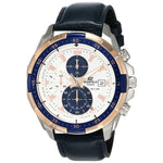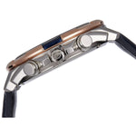 A large standard chronograph. The three-dimensional bezel, and strong in-dial design and coloring create a powerful design. Uses a genuine leather band.