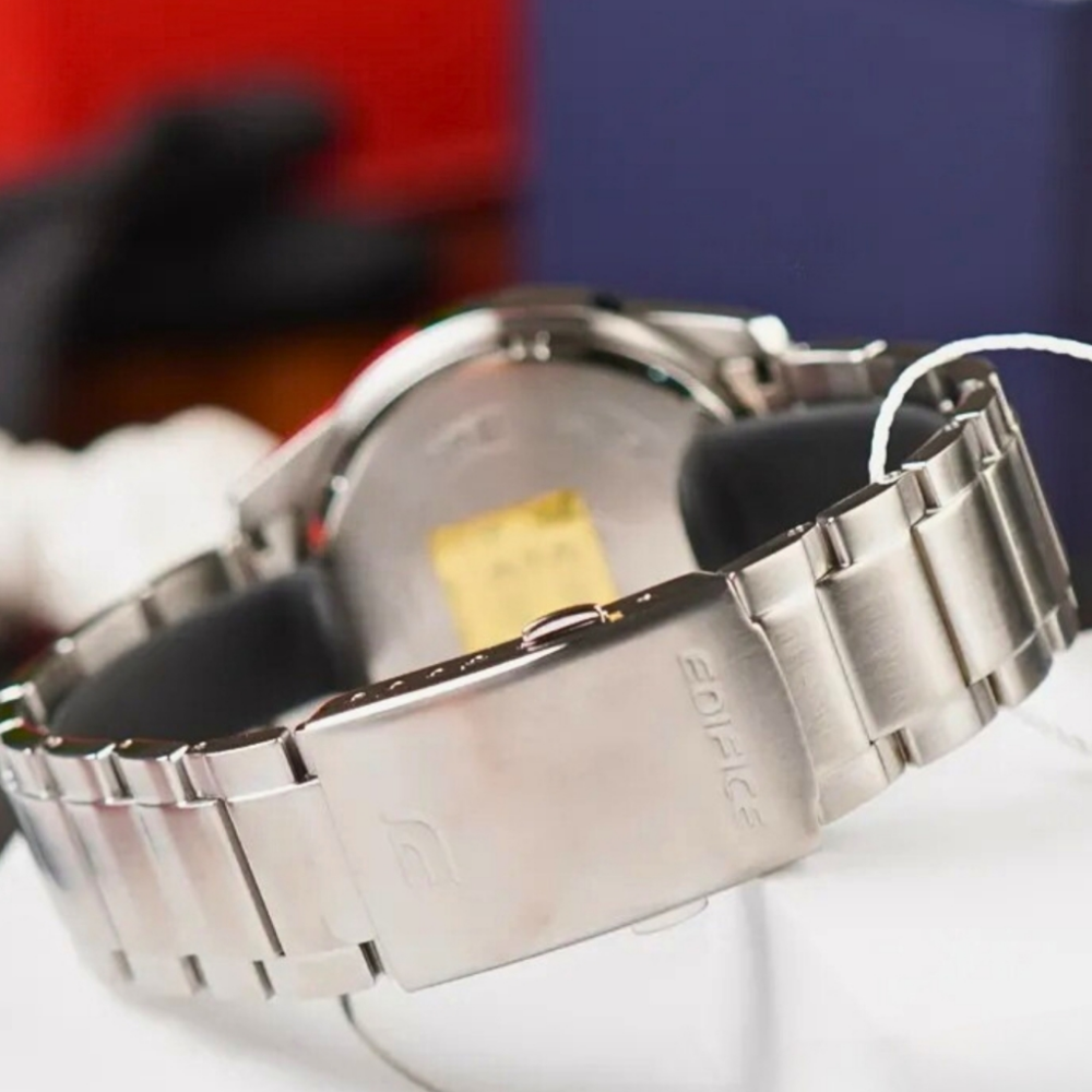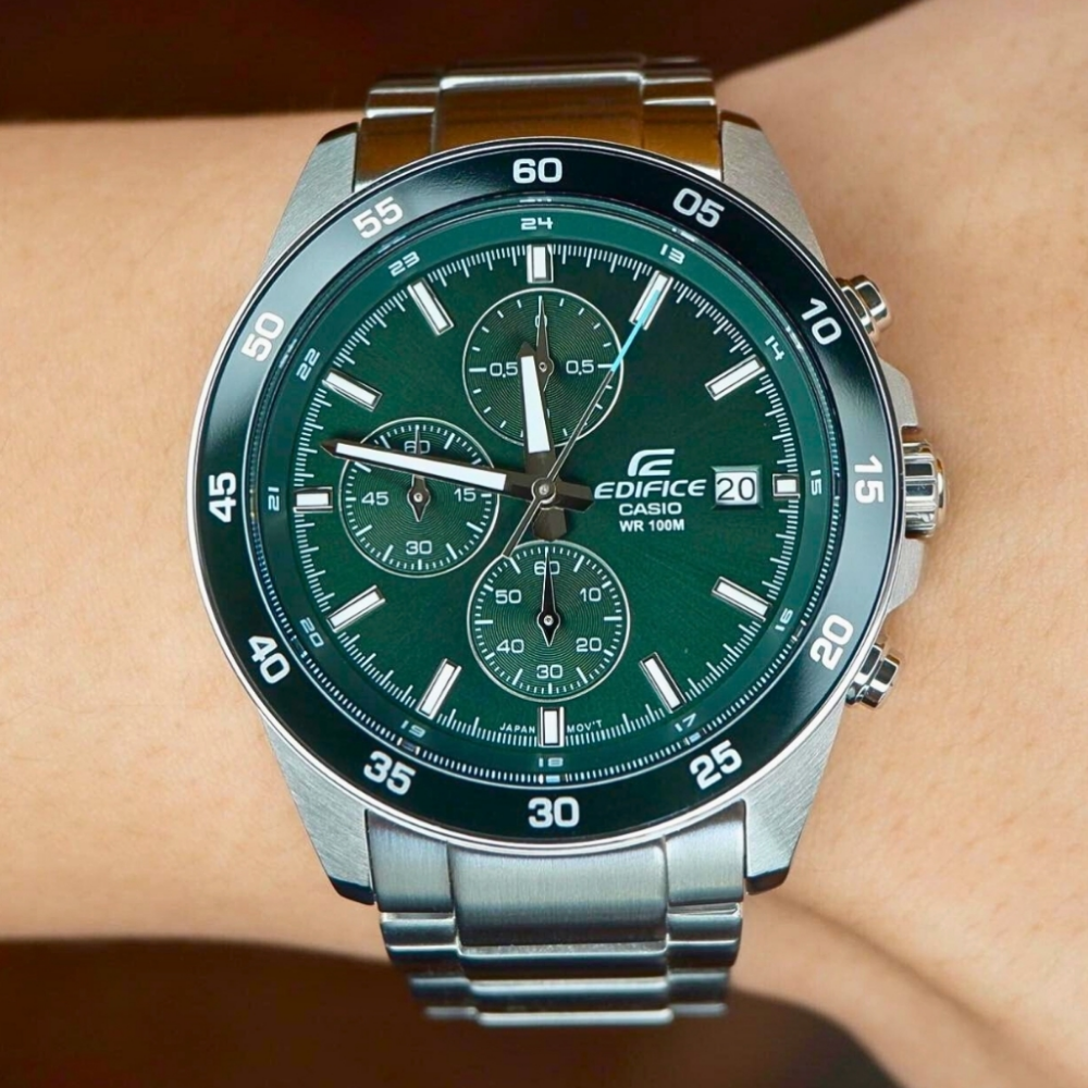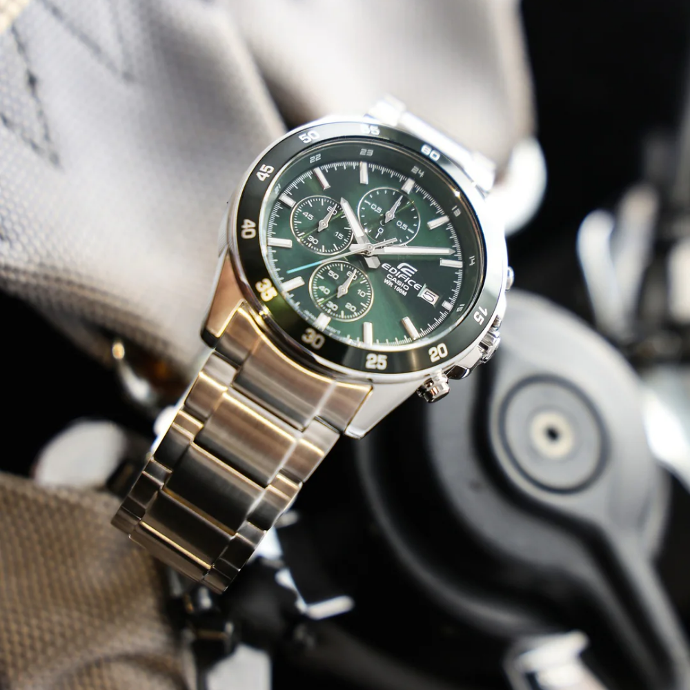 Elevate your style with a classic EDIFICE chronograph featuring a mid-sized case and finely detailed design.