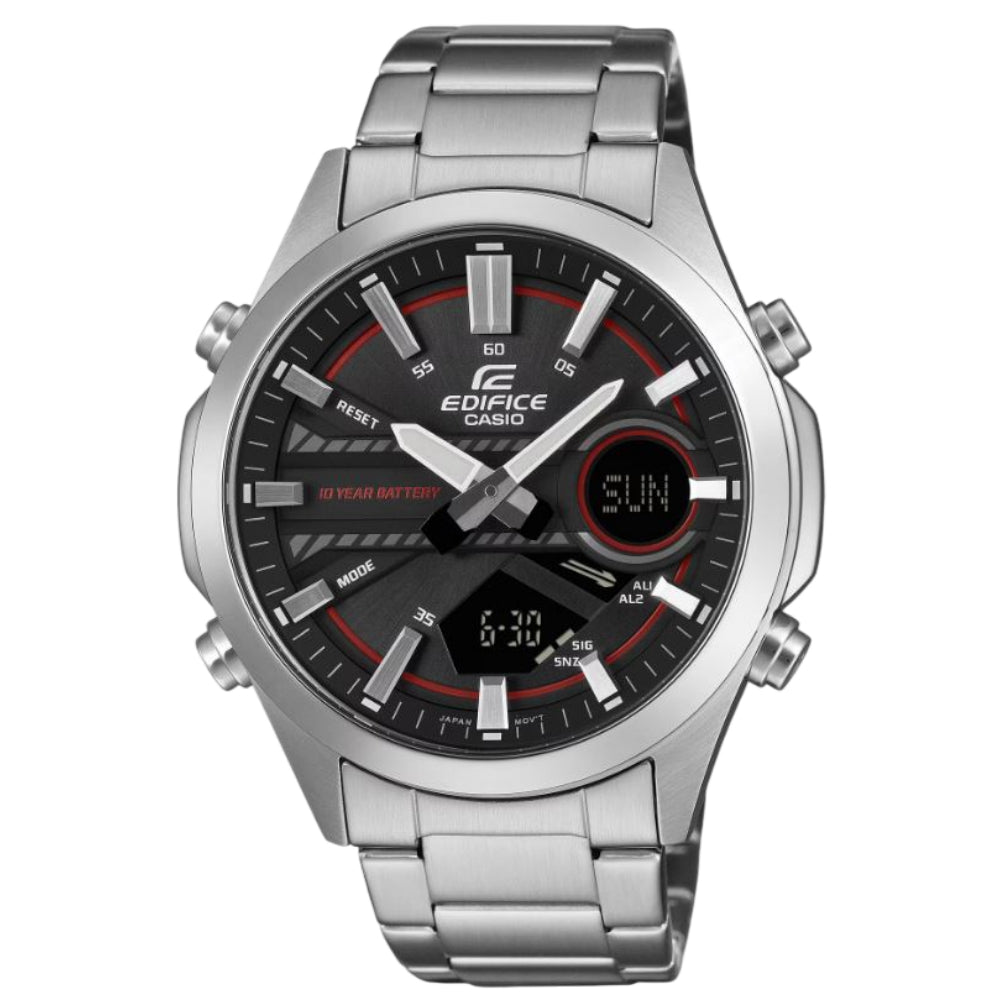 Free yourself to focus on life. Get the EFV-C120 analog-digital combination timepiece with a 10-year battery you won’t have to worry about for ages.