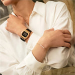 These designs blend elegance and casualness in ways that make them go great with street fashions. The case and bezel have mirror finishes that enhance the texture of the metal.