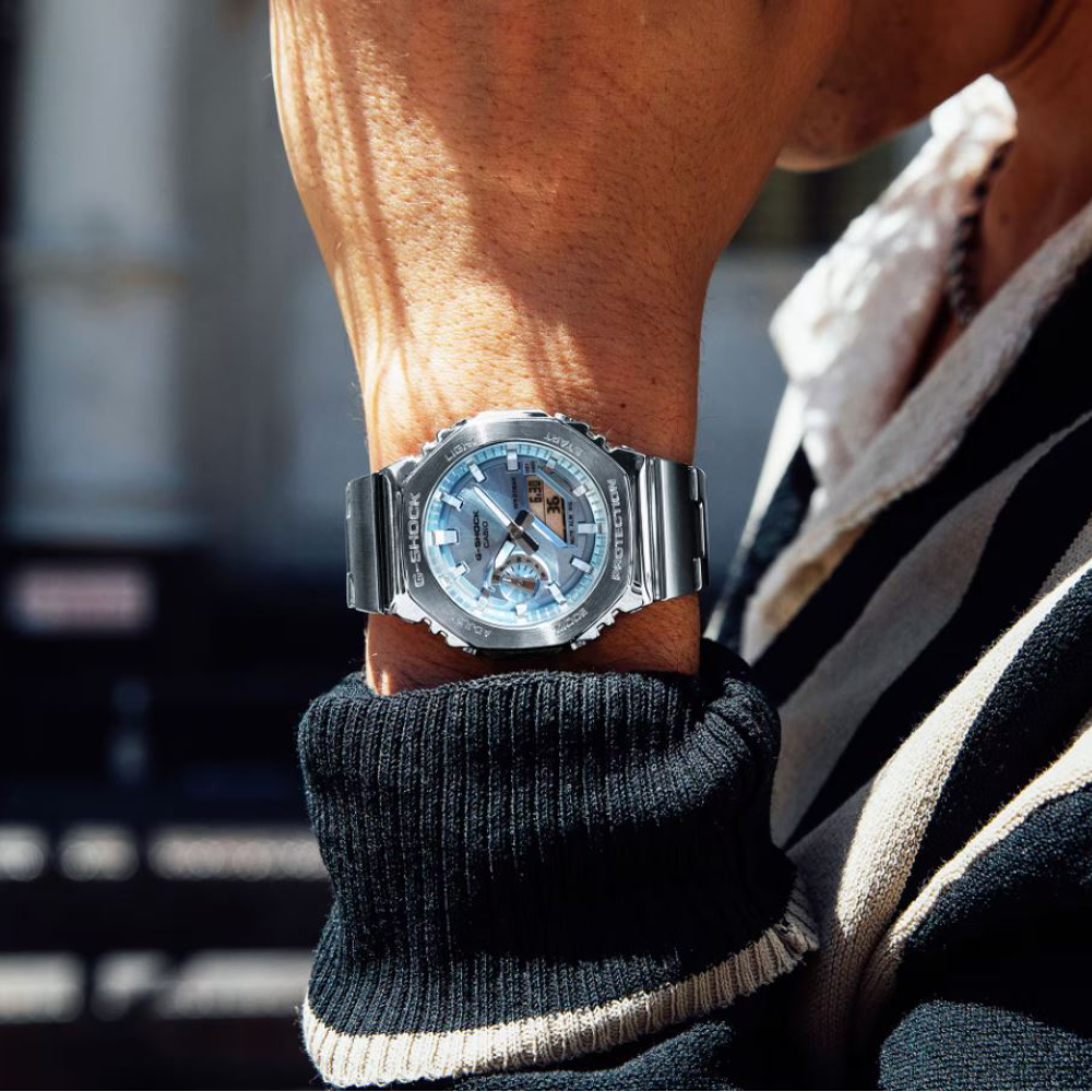 Introducing the GM-2110D — an analog-digital combination G-STEEL based on the GA-2100, now with a stylish metal bezel and band update.