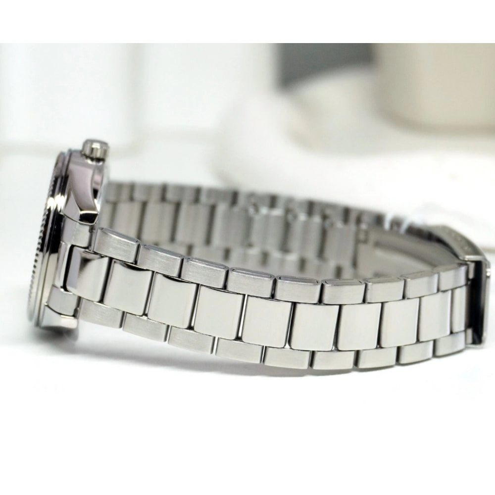 The easy-read date display at the 3 o’clock position adds an extra handy touch. Water resistance up to 50 meters frees you from worry, even on rainy days.
