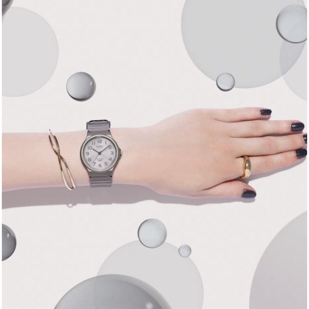 A simple design with basic hour, minute and second hands, water resistance for daily use and a lightweight, comfortable fit for an easy, breezy timepiece.