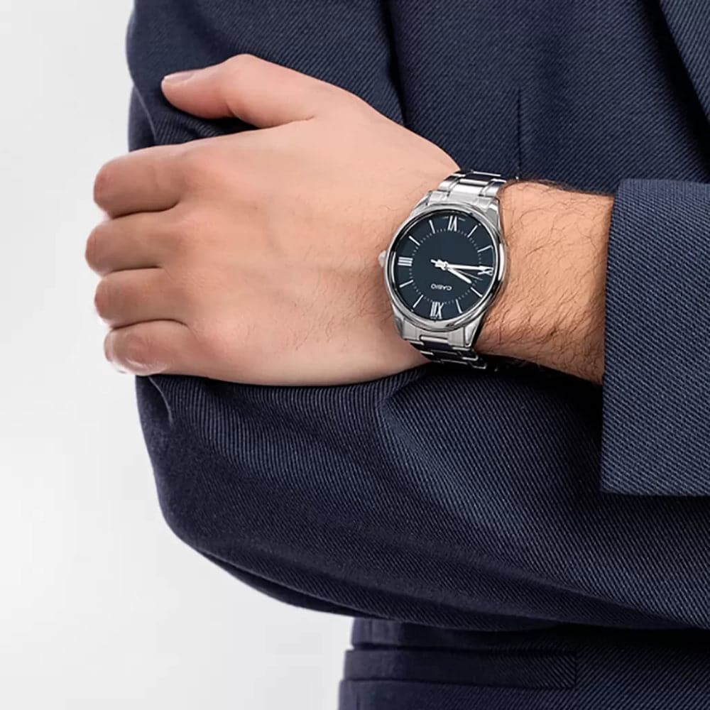 Style yourself for work or play with the MTP-V005 line of Casio dress watches. The simple, clean design of the face makes it easy to be on time. These versatile timepieces are water resistant for daily use, freeing you from worry when out in the rain or washing up. Build your own—just choose Arabic or Roman numerals, metal link or leather band, dark or light watch face, and you’ll have a handsome timepiece that projects your personal brand.