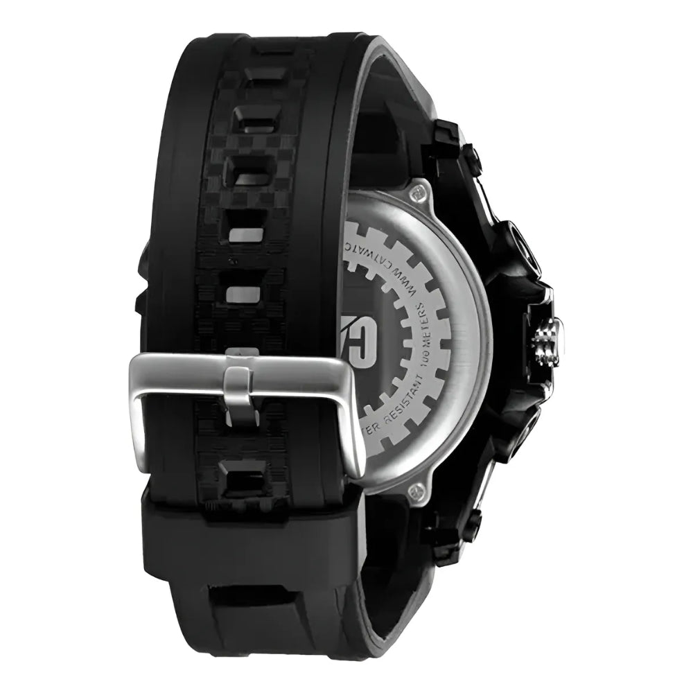 A classic Cat watch with a bold aesthetic; combining function and style. The Boston Chronograph Cat Watch is made up of a stainless steel case and available with a stainless steel bracelet or leather strap. Dials are presented in the powerful Cat color combinations and the watch is water resistant to 100m.