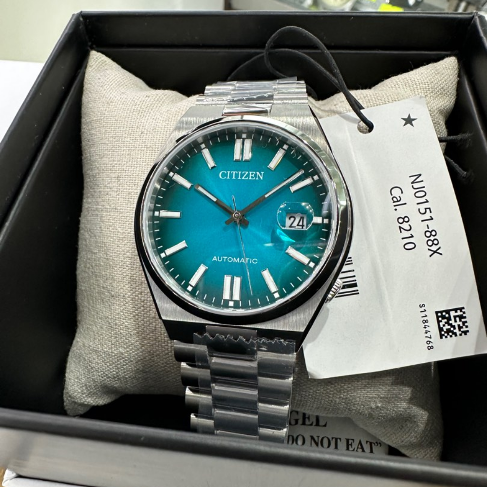 Pick your color now. This year with new additional colors into the previous collection and spoilt for choice. Classic design reflects meticulously considered craftsmanship in the pursuit of enduring quality. Come with modern size at 40mm in diameter, sapphire glass and stainless steel case and bracelet. Features teal dial, date display at 3 o'clock hour index, and 50 meters of water resistance. With its Calibre 8210 comes with an approximately 40 hours of power reserve, 21 jewels and a 21,600 vph beat rate.