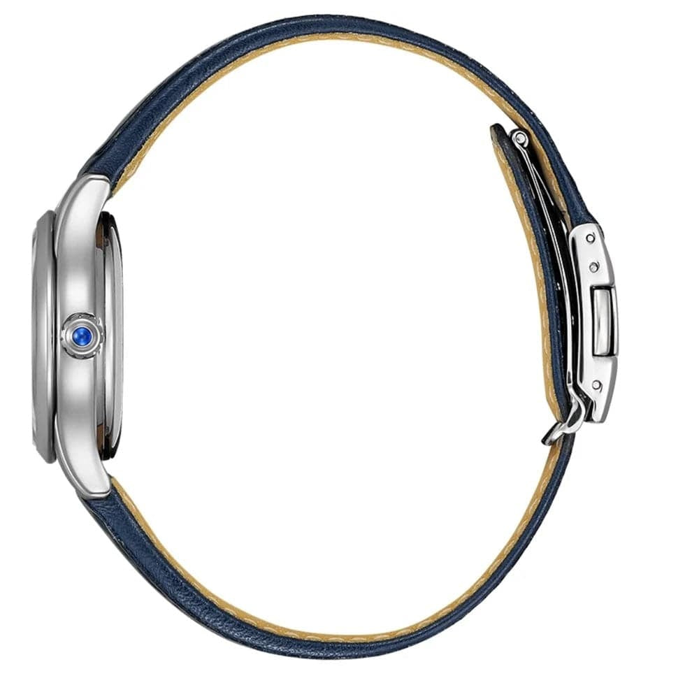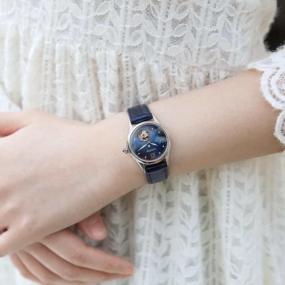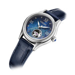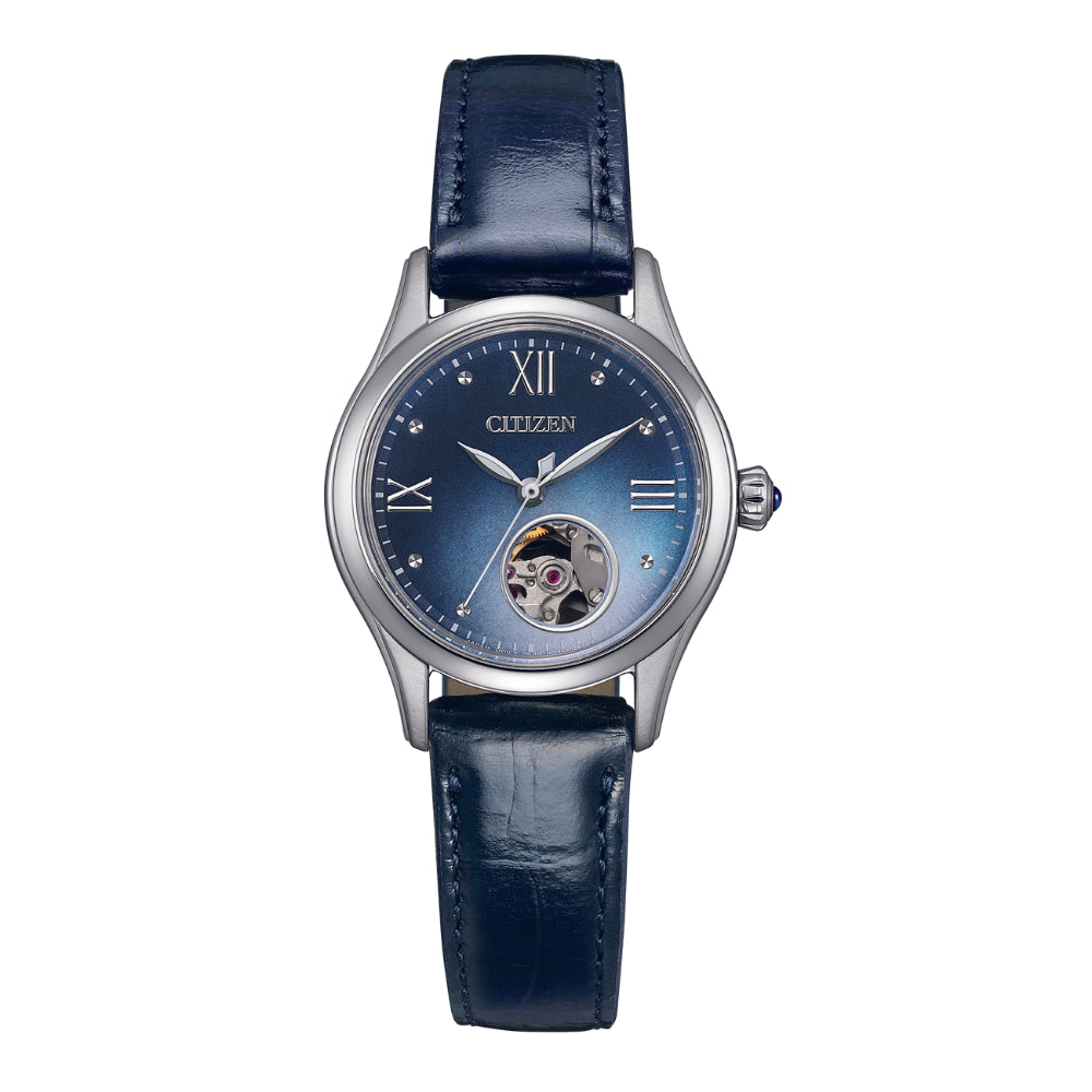 A feminine design that combines the technology and craftsmanship Citizen has to offer. Part of the Women’s Automatic collection, this watch features a 40-hour power reserve, 50-meter water resistance, silver indices against a blue, open-heart dial encased in a stainless-steel case and matching blue leather strap. By incorporating functionality and design, you can experience luxury and confidence daily.
