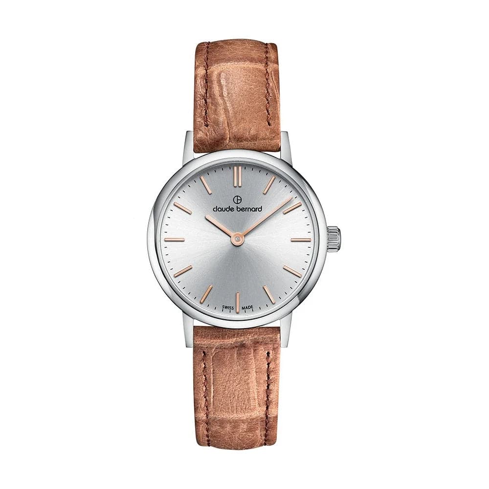 Claude Bernard Women's Silver Stainless Steel Quartz Silver Dial Brown Leather Band Watch