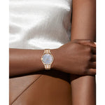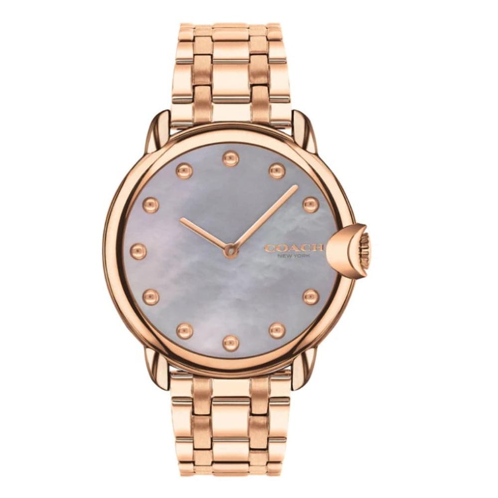 Refined And Modern, The Arden Watch Is a Minimalist, Go-With-Everything Style. Finished With a Dimensional Coach Signature Crown, This Rose Gold Tone Bracelet Design Features a Mother-Of-Pearl Dial and Pearlized Markers.