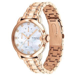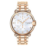 Refined and modern, the Arden watch is a minimalist, go-with-everything style. This rose gold tone bracelet design features a luminous mother-of-pearl dial with three sub-dials marking seconds, minutes and hours. Shimmering with Swarovski® crystal markers, it’s finished with a dimensional Coach Signature crown.