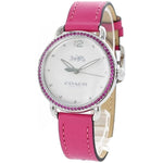 COACH DELANCEY ANALOG QUARTZ PINK CRYSTAL SILVER STAINLESS STEEL 14502879 LEATHER STRAP WOMEN'S WATCH