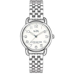 With its rounded, fixed-lug case, the slender Delancey watch echoes the softly shaped hardware of key Coach handbags. The bracelet style features stainless steel hardware accented with bold numerals and a heritage Coach Horse and Carriage emblem.
