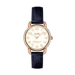This beautiful timepiece is made by a rosegold stainless steel case and a blue genuine leather strap. It's powered by quartz movement.