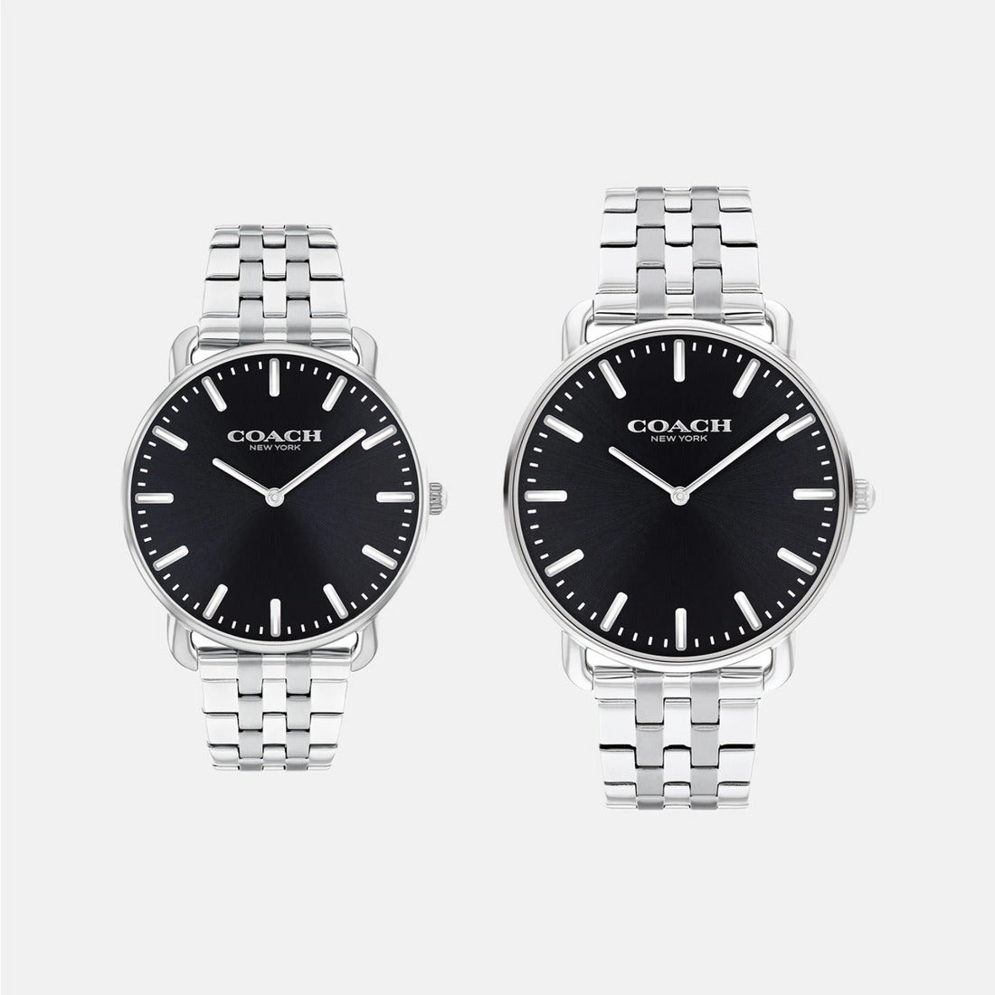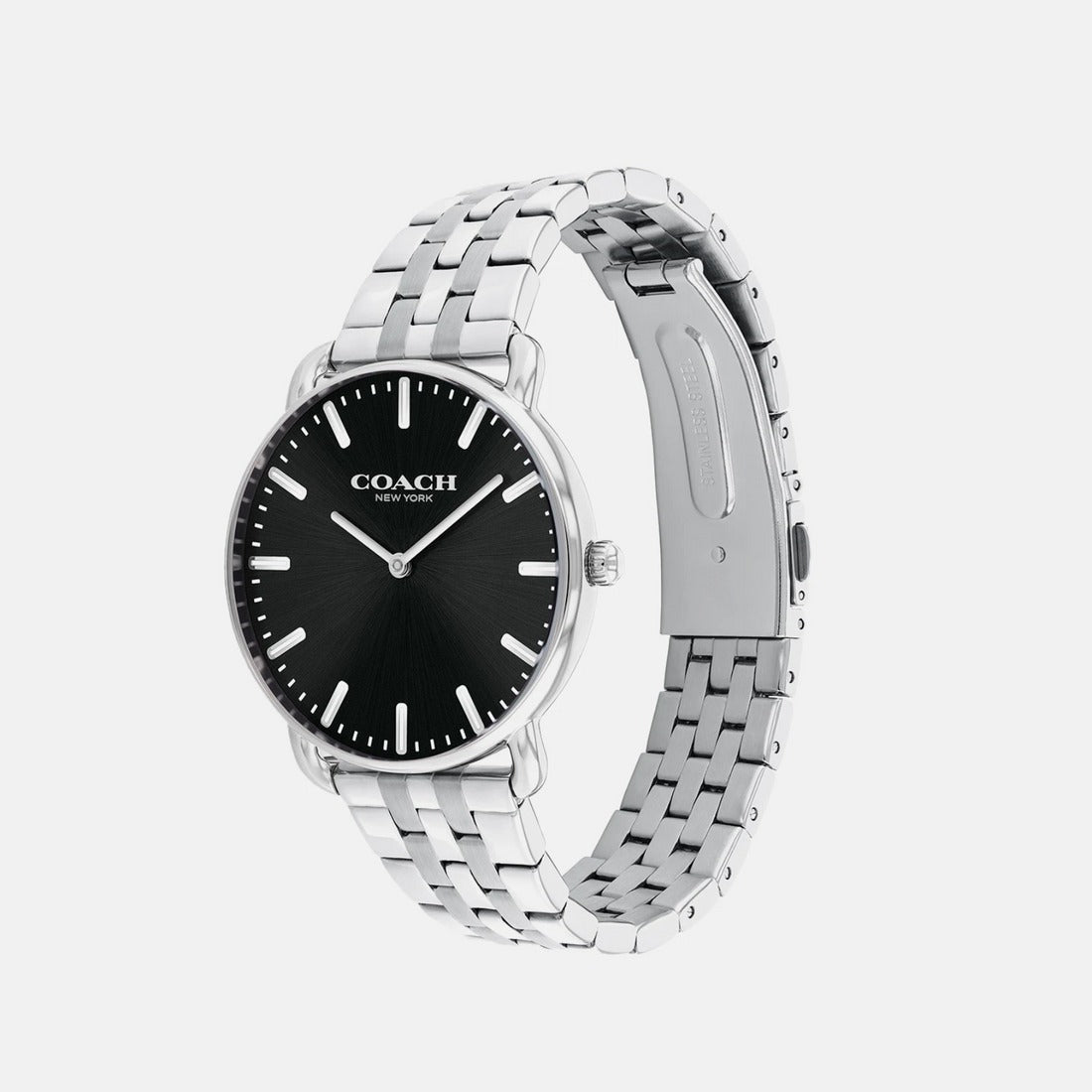 The Coach Elliot Watch is a timeless accessory that embodies sophistication. Featuring a sleek black dial set in a silver-tone stainless steel case, this watch combines elegance with durability. Perfect for everyday and formal wear, its water resistance of 30 meters adds practical versatility.
