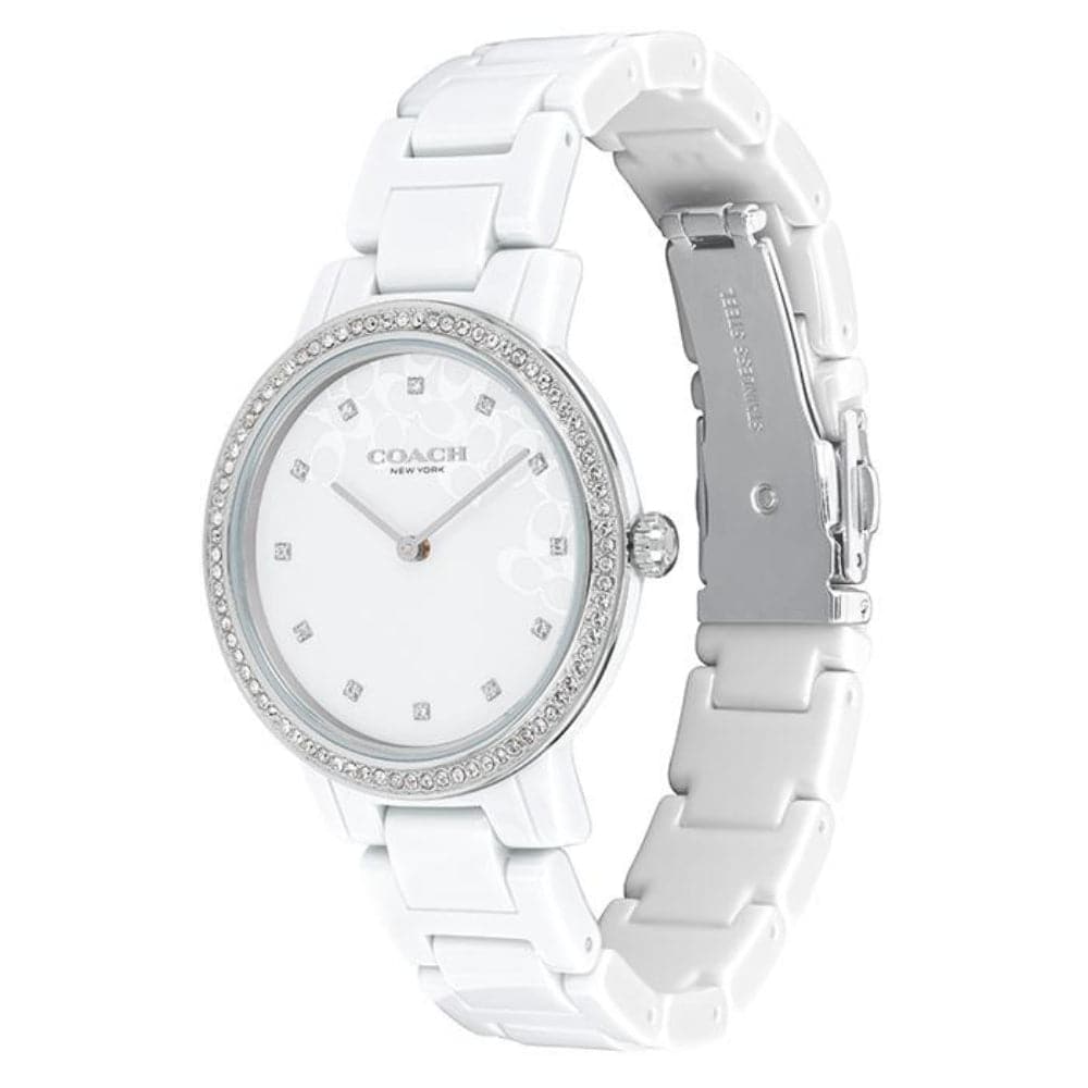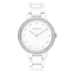Named for the glamorous New York City Street, the Park watch from COACH is an elegant style perfect for day or night. This polished gift set shimmers with crystals and includes one sleek stainless steel bracelet timepiece and a delicate pave bar slider bracelet. The bracelet adjusts to fit most wrists. Wear together or separately.