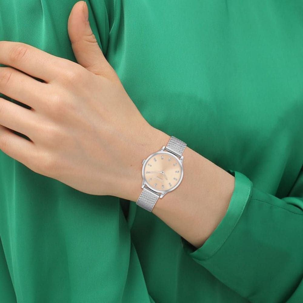 Named for the vibrant art-filled neighborhood on the West Side of Manhattan, the Chelsea is an elevated choice for day or night. The 32mm case is finished on a sleek stainless steel bracelet design which shimmers with stacked crystal markers on the carnation gold tone dial.