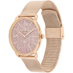 With clean lines and a modern minimalist sensibility, the Elliot is a true design classic ready for workdays and weekends. Finished with a sleek mesh bracelet, this carnation gold tone round watch features a glittery pink dial detailed with a pink ribbon marker, the international symbol for breast cancer awareness. To continue the fight against this disease, 10% proceeds of the sale of this watch will go to the Breast Cancer Research Foundation.