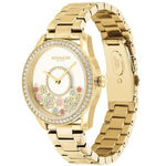 The Preston watch is an elegant pick for every day. Shimmering with Swarovski® crystals, this gold tone design features rotating Tea Roses on dial, the Coach prairie-inspired motif.